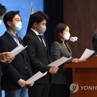 하는 아쉬움이 있습니다. 전용기 더불어민주당 의원과 오영환, 이소영, 장경태, 장철민 의원이 9일 오전 서울 여의도 국회 소통관에서 '더불어민주당 2030의원 입장문' 발표...